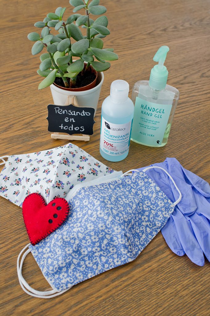 - Llevamos mascarillas y gel hidroalcohólico. Llevamos guantes. Aunque si estáis conformes usamos únicamente el gel cada vez que vamos a manipular al bebé. (Algunos bebés se incomodan al contacto con los guantes)